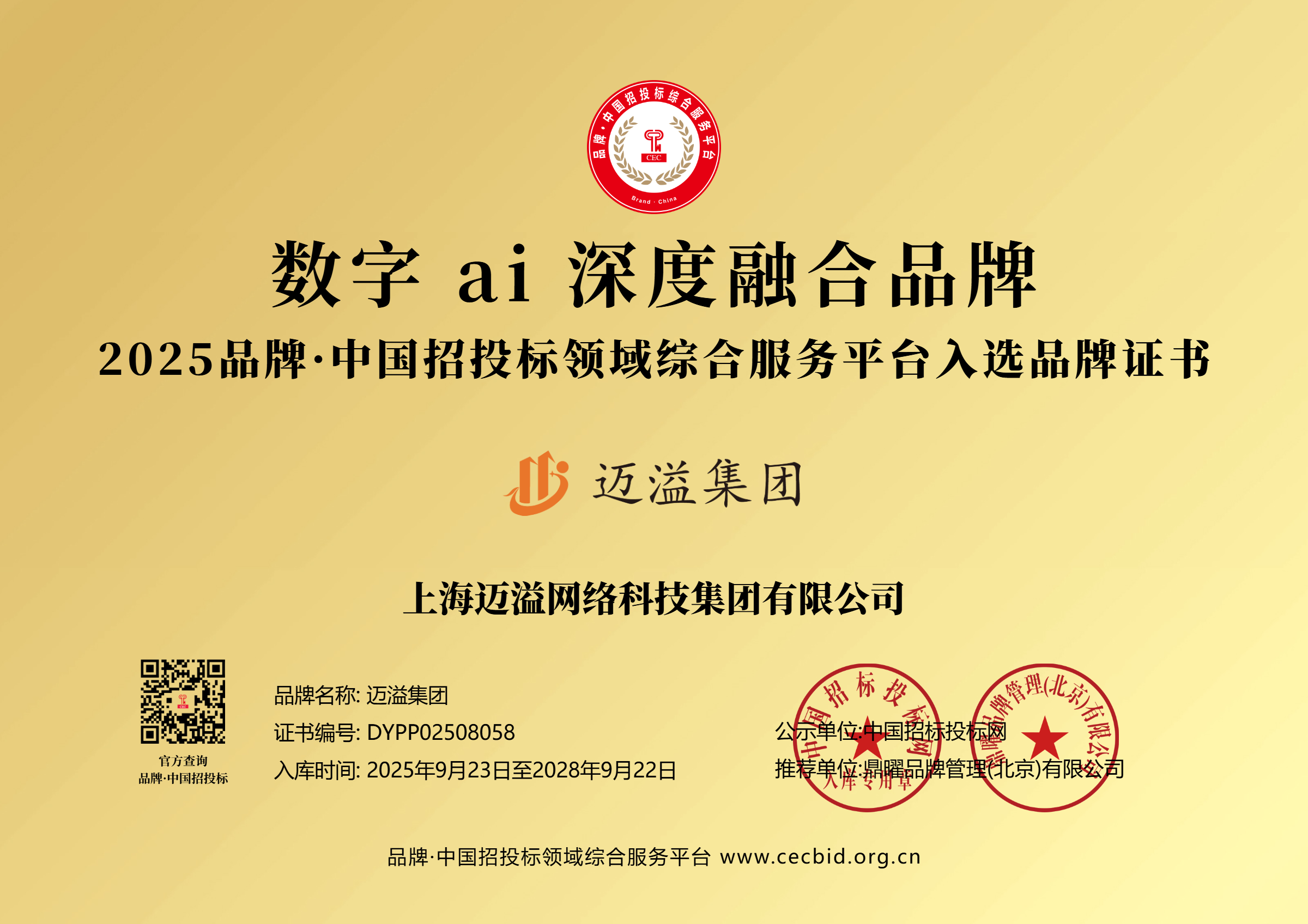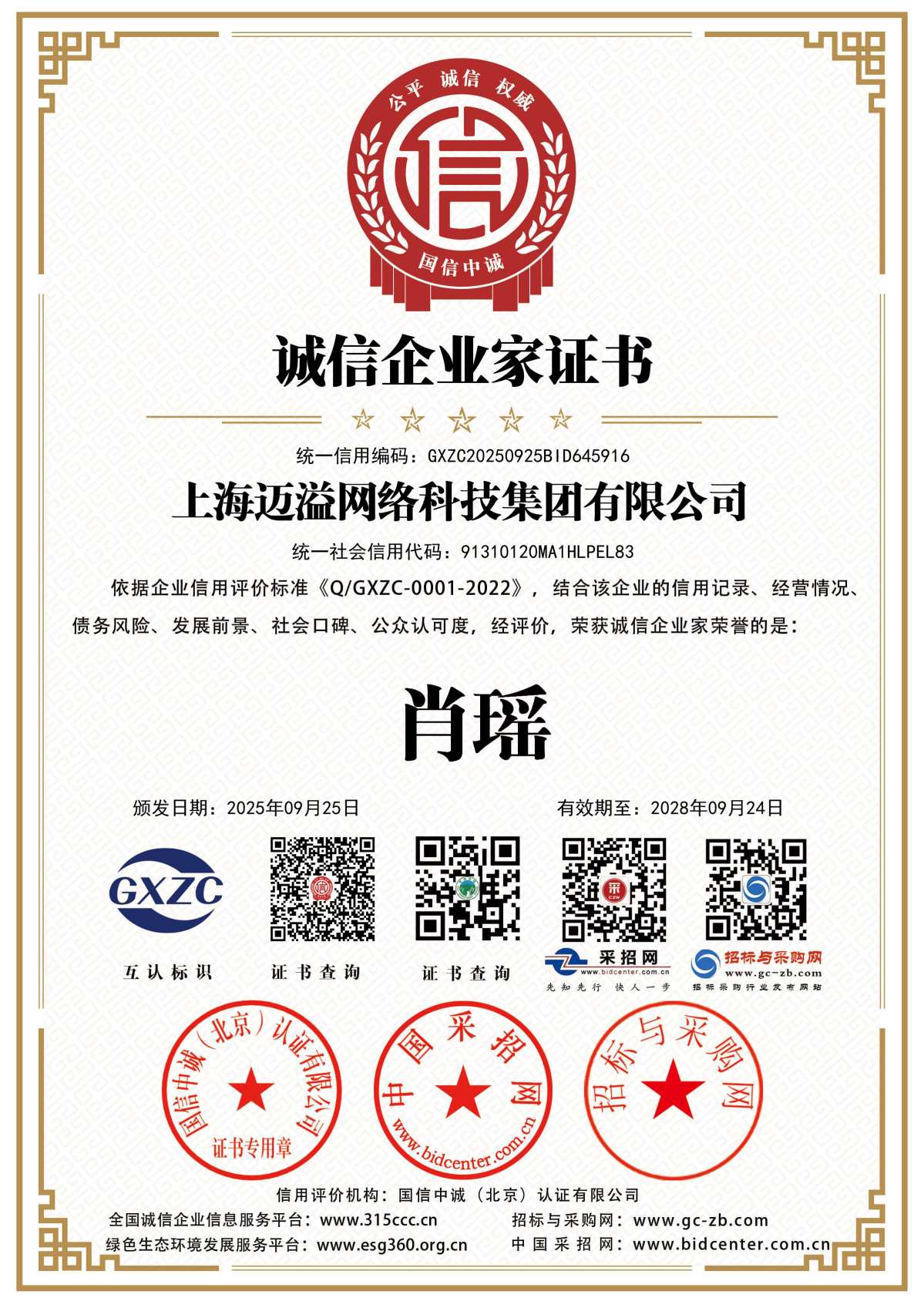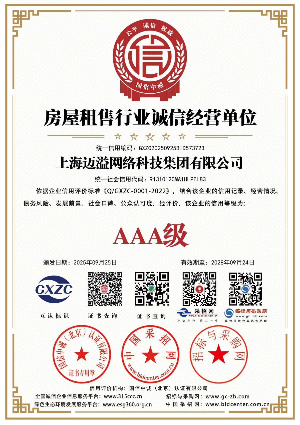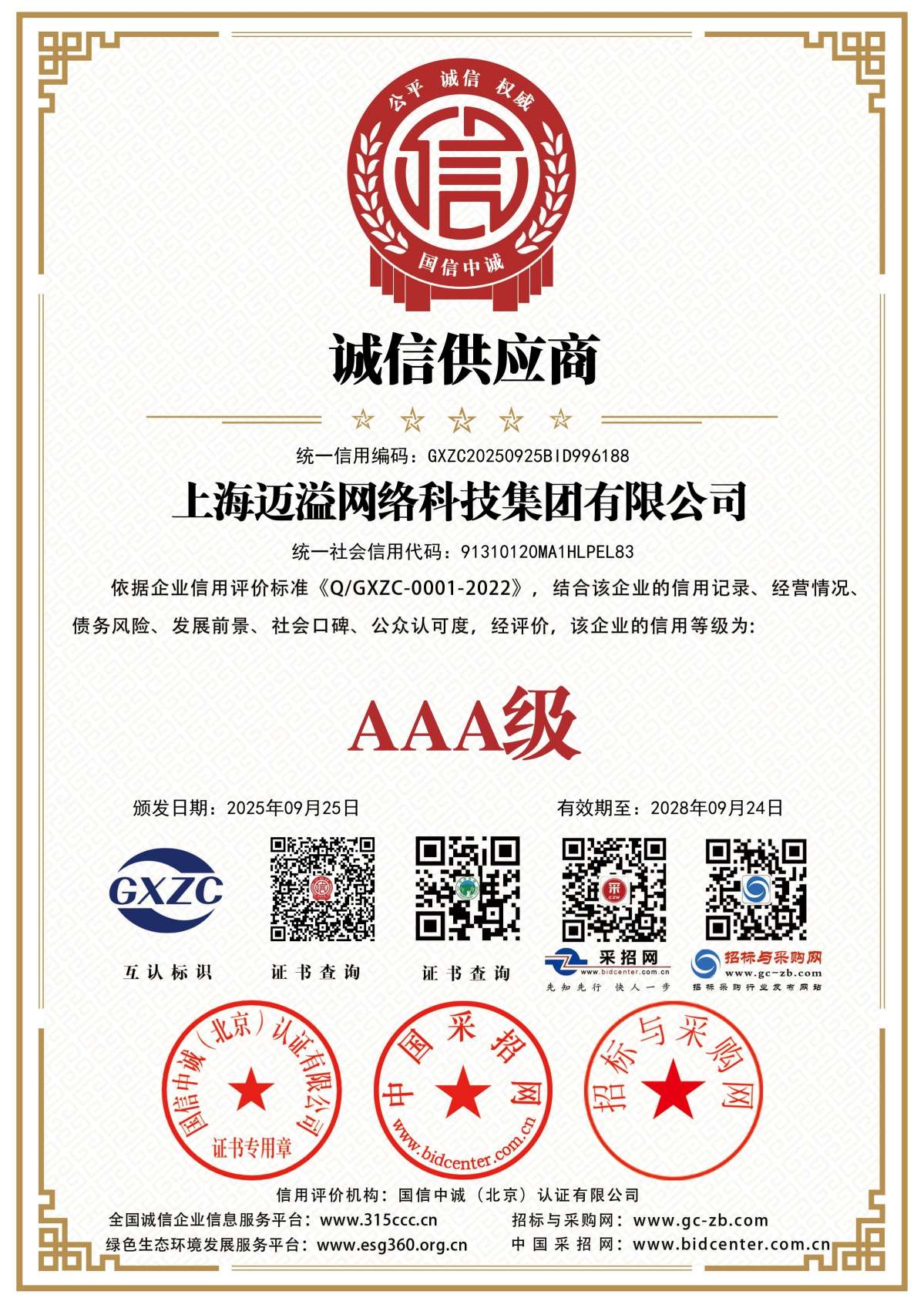 招投标信用等级证书