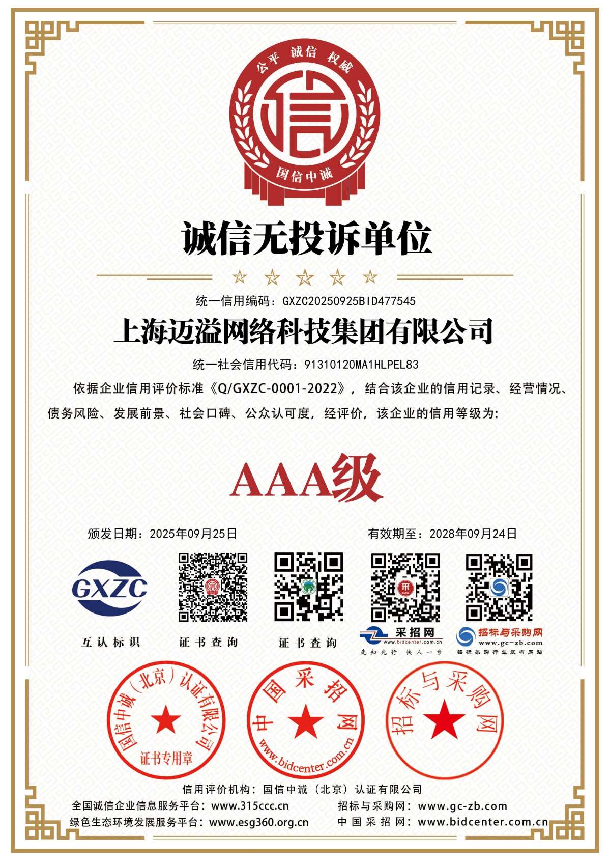 AAA级信用企业